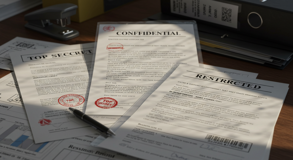 機密文書は、重要度レベルによって、以下のように種類・分類されます。