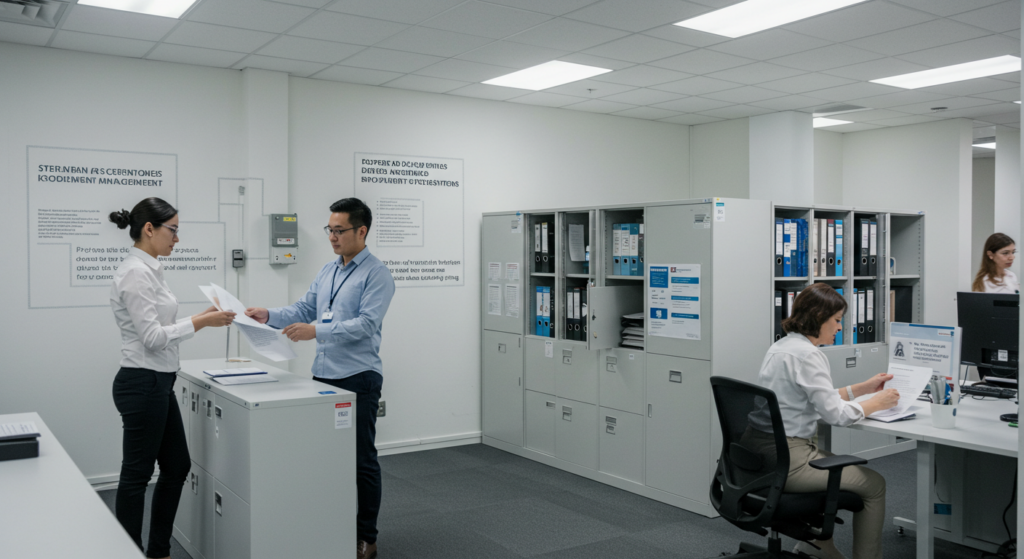 機密文書の管理方法には、保管方法、社内での取り扱い・ルール、廃棄方法の3つの要素があります。以下に、それぞれの要素について、詳しく説明します。